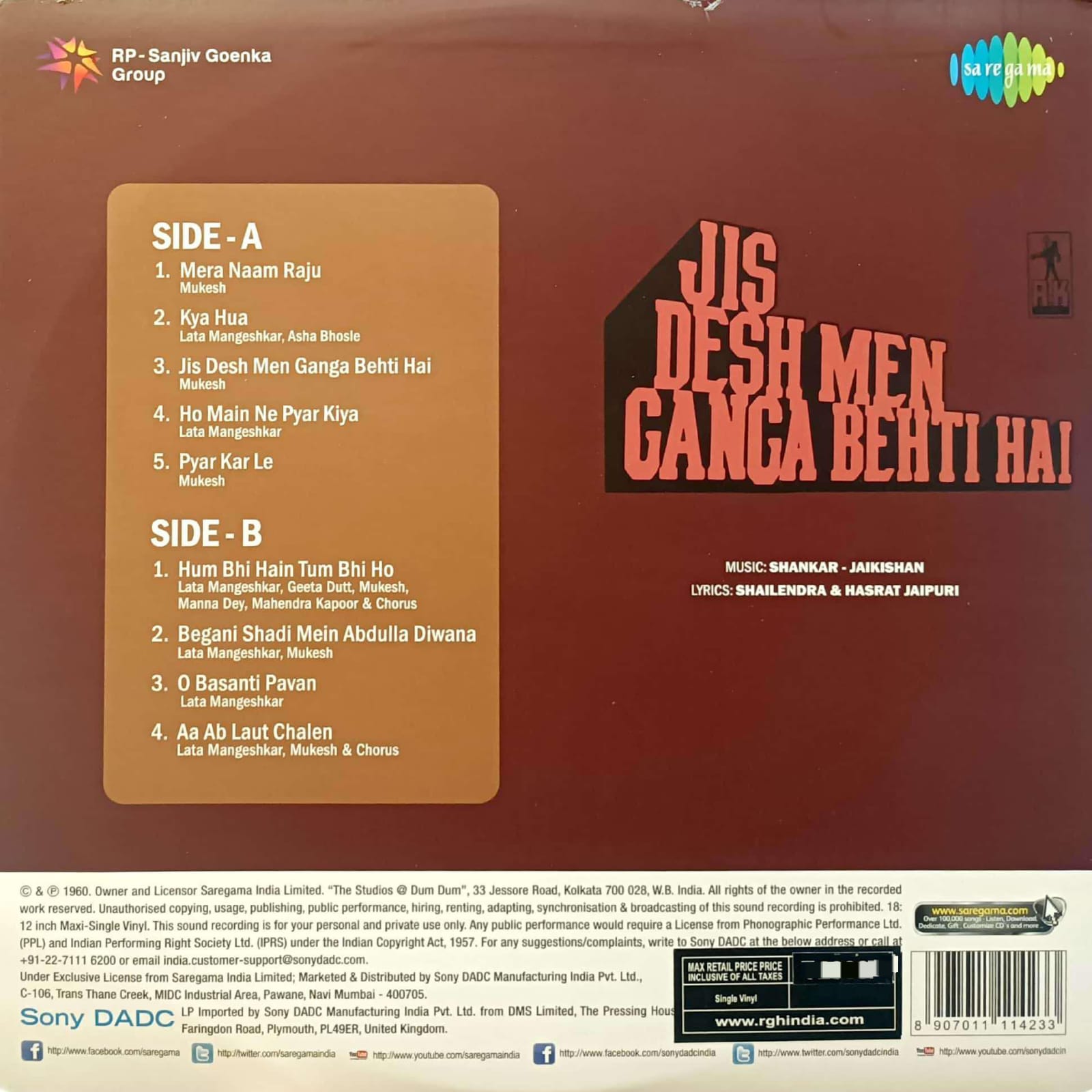 | Side A | A1 Mukesh– Mera Naam Raju |