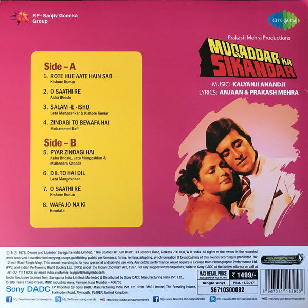 | Side B | B1 Lata Mangeshkar, Asha Bhosle & Mahendra Kapoor– Pyar Zindagi Hai |